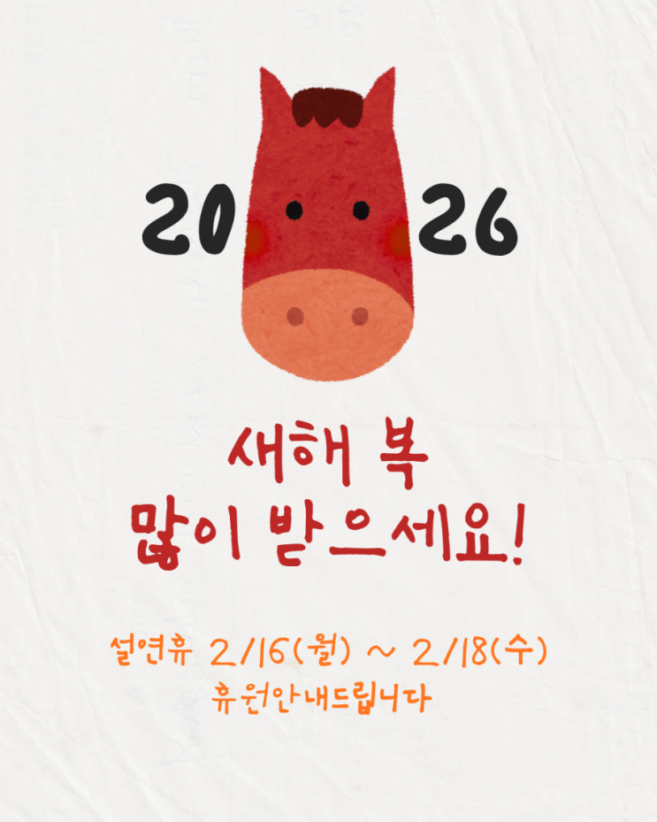 새해 복 많이 받으세요 18일 (수요일) 설연휴로 휴강입니다 <img src="https://blogthumb.pstatic.net/MjAyNjAyMTNfMTYg/MDAxNzcwOTcxODkyOTc2.-Xb_M1LanbTsLyMT0-mLarJ5xxVBK0hfPBh7BSoh7Dwg.4I4ihdMWJmtyerZmmD5Ua6O4wigf1dYoItN67VdNaG0g.JPEG/92E5EC01%A3%AD4220%A3%AD4747%A3%AD8980%A3%AD1515E6714D1F.jpg?type=s3" />