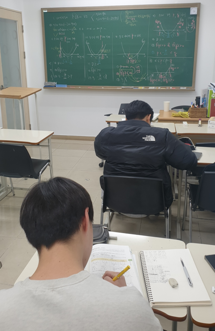 오늘도 이른 아침부터 학원에 나와서 하루종일 수학을 공부하는 기특한 우리 '머모'들~~ 백암고, 신서고를 접수하겠다는 성실맨 원투펀치~! 이언 & 윤찬 목동고, 강서고~ 임의배정의 충격을 뒤로하고 정면승부하기로 다짐한 다연이와 민우~ "진정한 노력은 결코 배신하지 않는다." [오늘 학습한 내용] - 이차방정식 실근의 조건 실근의 부호 실근의 위치 (근의 분리) 수학 전반에 있어 두루 활용되는 개념이니, 여러번 써보면서 (백지테스트) 반드시 숙지하시길~ ^^ - 이차방정식 실근의 부호 - 이차방정식 실근의 위치 (근의 분리) https://www.instagram.com/muchmore_academy <img src="https://blogthumb.pstatic.net/MjAyNjAyMjZfODMg/MDAxNzcyMTA0NzAyODQy.P6yVrcdvBF0y1ynlbmjvl6P-GrzzL54K4015zFQNMbAg.08FYEk7676b2rdxykvjZHuL9djZZzm1bOYoOStJ101Ag.PNG/이언_윤찬.png?type=s3" />