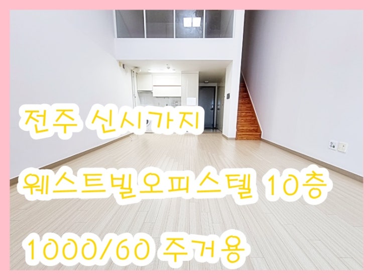 전주 효자동3가 신시가지 오피스텔 웨스트빌 원룸복층형 월세 임대1000/60 주거용