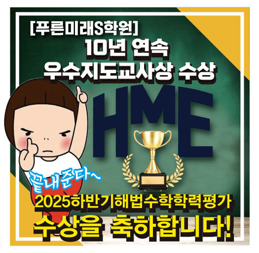 안녕하세요? 푸른미래S학원입니다. 2025년 11월 15일 토요일에 실시된 HME 시험 성적이 11월 28일에 발표되었습니다. 이번에도 우리 푸른쓰들이 열심히 공부해준 결과가 발표되었어요. 본선 진출 7명의 쾌거를 이뤄낸 우리 자랑스러운 푸른쓰들 감사합니다. 하루에 두번씩 등원해서 모르는 문제는 다시 배우며 열정적으로 공부해 준 우리 푸른쓰들 정말 자랑스럽습니다. 열심히 공부해 준 푸른쓰들과 함께한 간식 파티 2025년 하반기 HME 시험을 준비하며 한층 성장하고 복습 시간을 보낼 수 있어서 행복했습니다. 서울시 양천구 신정3동 영어 수학 / 신정3동 영어학원 / 신월6동 수학 / 신월6동 영어 / 지향초 / 신은초 / 장수초 / 신남초 / 금....... <img src="https://blogthumb.pstatic.net/MjAyNTEyMDVfMjc4/MDAxNzY0OTM2NjgzMDcy.XIhtiZ70hqcJmSHEhqY2J7-ld_XB5Wc2NxYqKxw0CoEg.5Wl_wZ9hWEsVnky3yEoCR1TnKj1_TIILje49ZCFq5jgg.JPEG/hme%C7%CF%B9%DD%B1%E2%BA%BB%BC%B1%C1%F8%C3%E2%BF%EC%BC%F6%B1%B3%BB%E7%BB%F310%B3%E2%BF%AC%BC%D3%BD%C5%C1%A43%B5%BF%BF%B5%BE%EE%BC%F6%C7%D0%BF%F8%C1%DF%B0%ED%B5%EE%B8%F1%B5%BF%BE%E7%C3%B5%B1%B8%B9%E9%BE%CF%B0%ED%B0%AD%BD%C5%C1%DF%C7%AA%B8%A5%B8%B6%C0%BB%C7%AA%B8%A5%B9%CC%B7%A1%BF%A1%BD%BA%C7%D0%BF%F8%BA%ED%B7%CE%B1%D7%BD%E6%B3%D7%C0%CF.jpg?type=s3" />