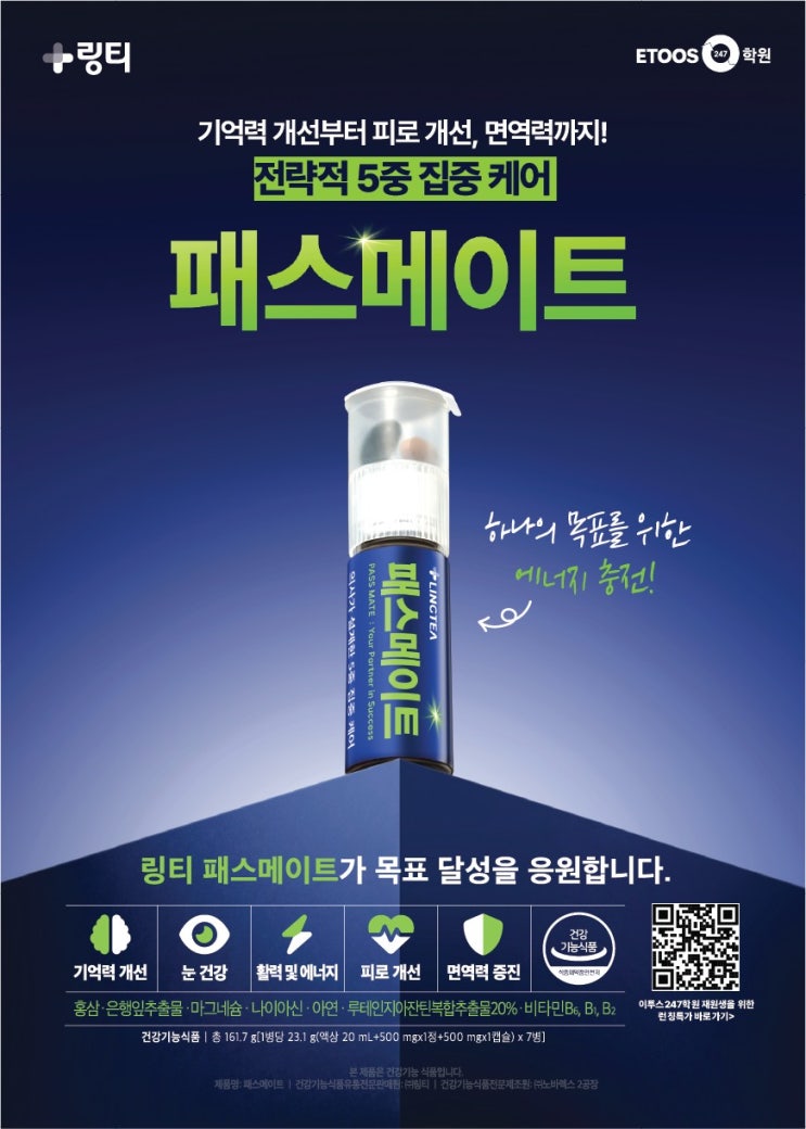 안녕하세요! 이투스247 서울성동점입니다. 이제 정말로 얼마 남지 않은 수능을 준비하고 있는 재원생에게 힘이 될 수 있도록 링티에서 패스메이트를 협찬해 주었습니다! 아침 일찍부터 등원을 하는 학생의 집중력을 위해 미리 세팅을 해두었는데요 패스메이트 마시고 집중력이 쑥쑥 올라가길 바랍니다~ 하나씩 가져가는 재원생을 보며 건강관리 잘 하며 마무리도 잘할 수 있는 이투스247 서울성동점 재원생을 늘 응원하겠습니다! 파이팅! <img src="https://blogthumb.pstatic.net/MjAyNTExMDdfMzAg/MDAxNzYyNDg0Nzc2NDAw.wCS7sWljPUmpxoL_y1VQpfUjRDfWgefUdcqhsoLUaBkg.GUr1_cDDicfmR5AnRIqSlVWyXRJ5SOL-zV8AXD9nJSog.JPEG/0889F4C7-540B-4030-B5B2-71B54FE32C68.jpg?type=s3" />