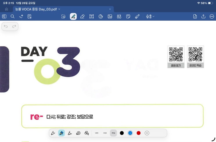 영상을 보고 단어 영어 3번 우리말 1번, 문장 영어 1번씩 책에 쓰고 여러번 읽은 후 한글 시험지를 보고 영어로 읽고, 답을 적으세요^^ 즐거운 하루 되기 바랍니다.^^ <img src="https://phinf.pstatic.net/image.nmv/blog_2025_12_26_3224/7cS1OCsCdL_01.jpg?type=f480x480" />