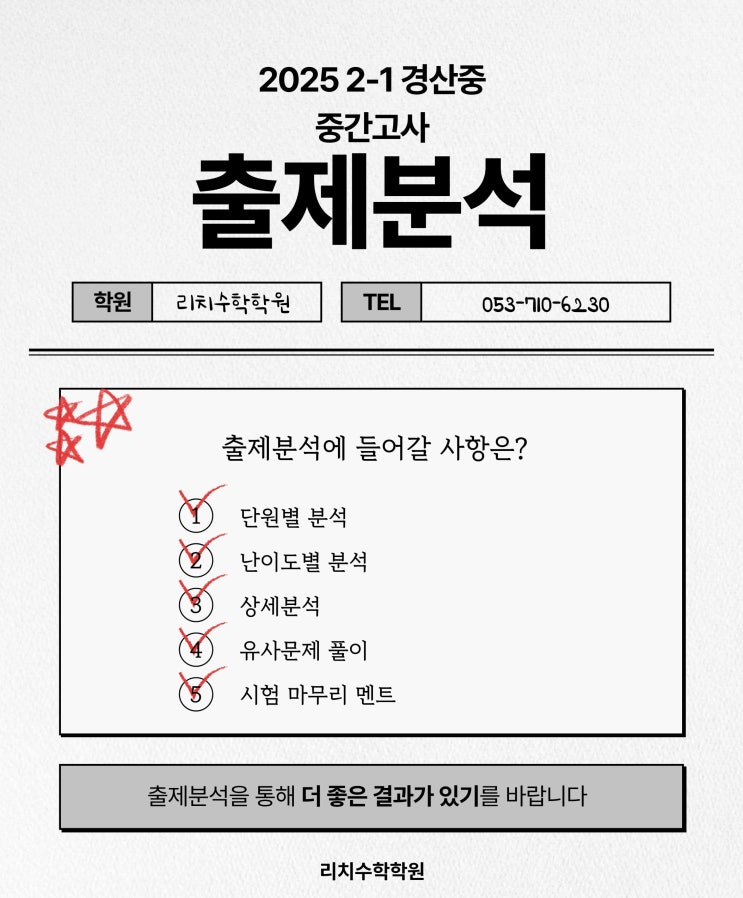 경산사동수학학원 - 경산중 2-1 중간고사 시험분석(2025) / 정리,습관이 점수를 만든다