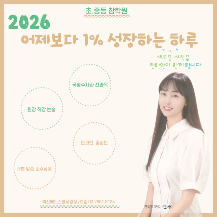 다음주면 새로운 학기가 시작되네요 걱정반 설렘반으로 시작될 새 학기~~ 힘내서 함께 시작해봐요 하루하루 성장하다 보면 어느 순간 놀라운 변화가 생기겠죠? 그 변화를 위해 함께 달려가 볼게요 3월 신입 상담 환영입니다~~편하게 문의 주세요~~~ #고척동학원 #참학원 #3월 #신입모집 #환영합니다❤️ <img src="https://blogthumb.pstatic.net/MjAyNjAyMjhfMTk3/MDAxNzcyMjA0ODAxMjk1.kQRGyHGtoZ9ZmbqtB28h9-YPCfv56n9U7dqNowYHrBMg.RzJrBeEyHyKtTutW3C3ng7dqBVHA0L6CKXxHYVsttjsg.PNG/900%A3%DF1.png?type=s3" />