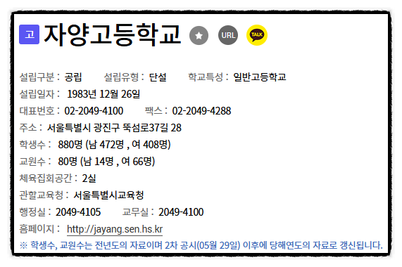 안녕하세요? 자양동 수학학원 매쓰플랜입니다. 오늘은 저희 학원에 다니는 학생들이 가장 많이 속해있는 고등학교, 자양고 수학내신을 잘 받는 방법에 대해서 알아보도록 하겠습니다. 자양고 알아보기 학교 알리미에 나와있는 자양고의 기본정보입니다. 1983년 12월 26일 설립되었군요. 학생수는 880명 이네요. 교원 1인당 학생수와 학급당 학생수, 성별학생수도 모두 학교 알리미에 나와있습니다. 자양고 학업성취도도 고1 1학기 학업성취도 고2, 3 학업성취도 자양고 수학시험분석 전체 23문항 분석 최하 난이도(★☆☆☆☆)에서 최고 난이도(★★★★★)까지 5단계로 구분하여 분석한 결과 최하 난이도(☆☆☆☆★) - 2문항, ★★☆ 난이도 - ....... <img src="https://blogthumb.pstatic.net/MjAyNjAxMTlfMjY5/MDAxNzY4ODI0MDU0ODQy.CEcjymd7-hf0u5SrIxQiTo3d-vPWueqZN2LZFOTnOxIg.8vzncs3r29AYvQzWMWLytsgANLdi5cczliS169bUsJcg.PNG/image.png?type=s3" />