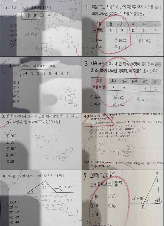MIT영재 영수 학원 제주 서중 1학년 2학기 기말고사 수학 총평 및 분석
