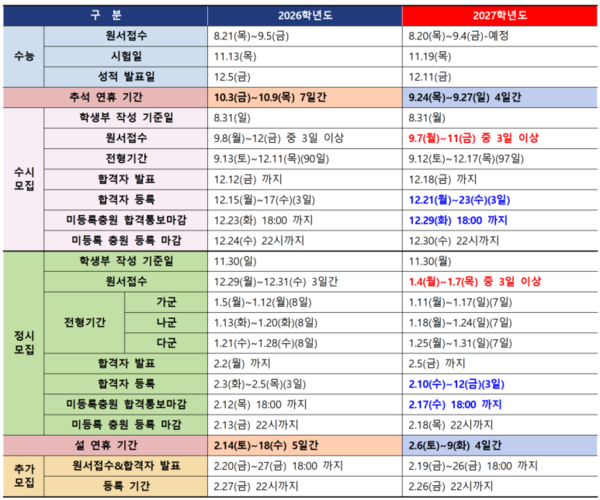 2027학년도 대학입시 일정