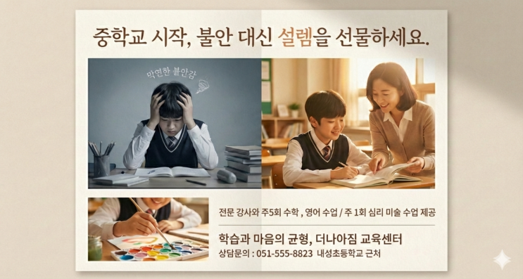 [부산 동래구] 예비 중1 학원 고민 해결! 불안을 설렘으로 바꾸는 더나아짐 교육센터의 5+1 커리큘럼