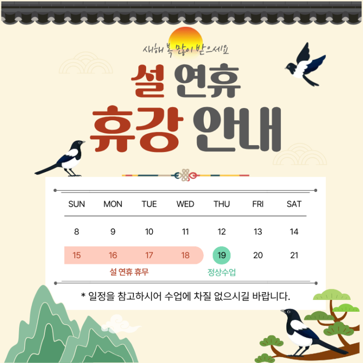 [다비드수학 명륜] 2026년 설 연휴 수업 안내(새해 복 많이 받으세요!)
