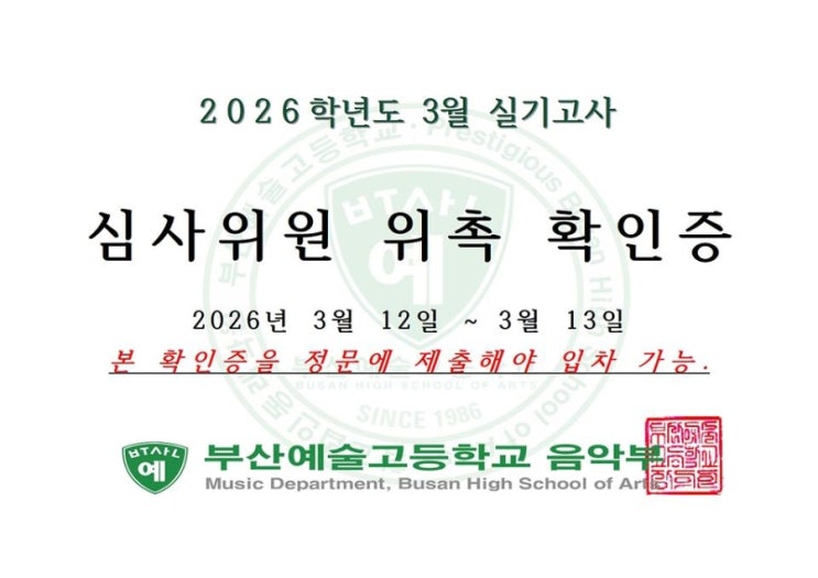 3월 실기심사로 진짜 26년도 시작이 실감나네요~~ 더샾전공반과 원장반 친구들의 활약을 기대하며 26년도 시작합니다 입시상담과 수업문의는 051.741.9595 한아름 원장선생님과함께 ❤️ #센텀음대입시 #센텀더샾음악학원 #재송동음악학원 #부산센텀음악학원 #해운대 #부산예중 #부산예고 #센텀초음악학원 <img src="https://blogthumb.pstatic.net/MjAyNjAzMTRfMjEx/MDAxNzczNDQxNjc3ODcz.GCorDm-EvP-ETrSYGM-yxHVpPSV2Klf6rZ8wFm6oPhgg.LxiTtta3lmozjHybwz5kmekxGr2cm4q0Jg_m_ivqaLog.JPEG/900%A3%DF1773441665216.jpg?type=s3" />