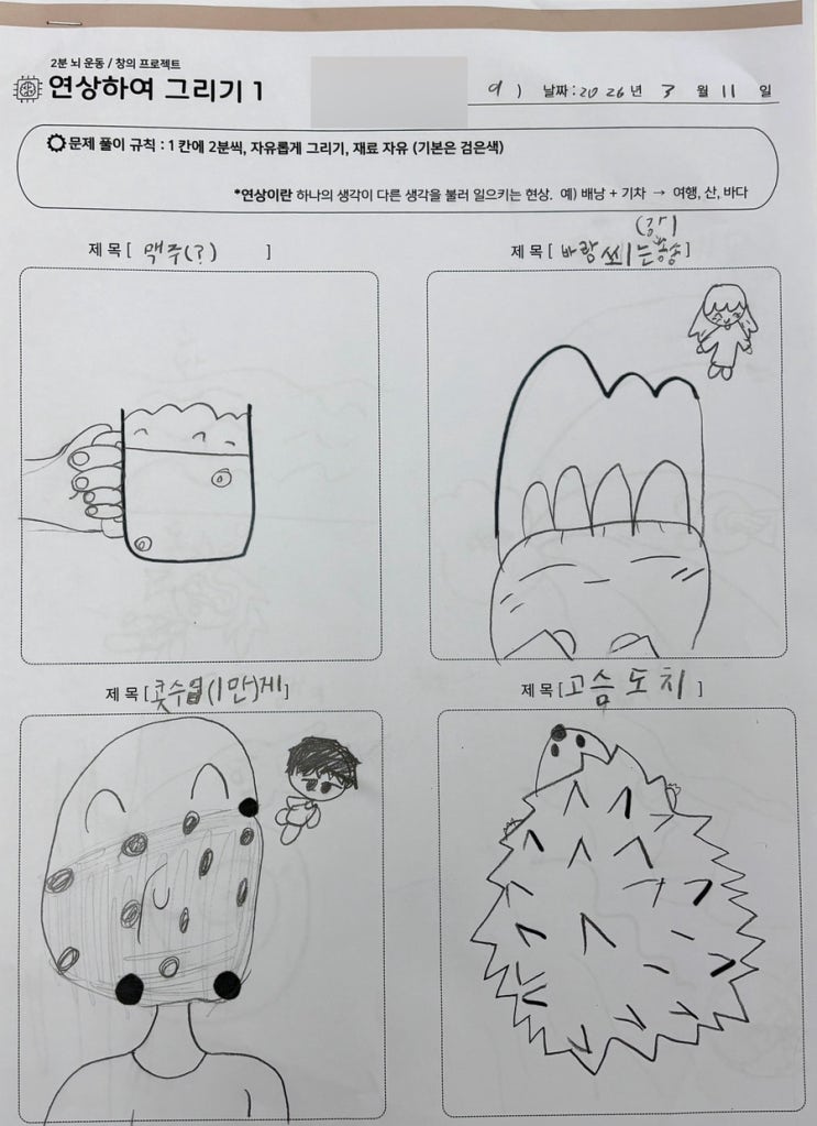[사상중흥S클래스/덕포동미술/비벼먹는성향미술센터]2분 뇌운동•창의력 팍팍 - 연상하여 그리기
