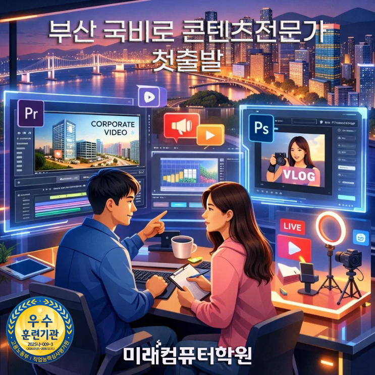 1. 부산 국비지원 멀티미디어콘텐츠제작전문가 과정, 지금 시작해야 하는 이유 요즘 부산 취업시장에서도 영상편집·콘텐츠제작·브랜드디자인 인재 수요가 폭발적으로 늘고 있습니다. 유튜브, 쇼핑몰, SNS, 기업홍보까지 모든 산업이 “콘텐츠 경쟁”으로 바뀌면서 멀티미디어콘텐츠제작전문가 자격증 과정은 실업자 취업의 가장 빠른 선택지가 되었습니다. 2. 스토리로 보는 과정의 시작 (포토샵·일러스트·프리미어·에펙) 처음엔 단순히 “영상편집 배우면 취업될까?” 고민합니다. 하지만 이 과정은 단순 편집 수업이 아닙니다. 스토리보드 기획 → 디자인 제작 → 영상편집 → VFX 합성 → 포트폴리오 완성 → 자격증 취득까지 한 번에 연결됩....... <img src="https://blogthumb.pstatic.net/MjAyNjAxMjlfMTI4/MDAxNzY5NjgxMjI5MTg4.iEkHcSisKHd-ylZhsIuqCljRE4YlF_gvXxW-O8_kkhQg.Vl8Vb-mZZjaaGsuTStS7b8YzhNeW_bWscYN_AbxcFcgg.PNG/1.png?type=s3" />