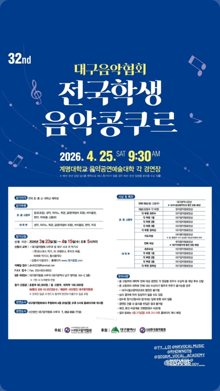 4월 동요 및 음악콩쿨정보 <img src="https://blogthumb.pstatic.net/MjAyNjA0MDNfMjAx/MDAxNzc1MTY2NDQzMDU3.6-2jaoFDEybKxgIdBLZB-PMKh0k_e18iKNrGiUOXAtwg.rm0XCdf-kzO-IqfRXQmYE1sUwNc0upElM9fhVscy-Ikg.JPEG/900%A3%DFIMG%A3%DF20260313%A3%DF113409%A3%DF236.jpg?type=s3" />