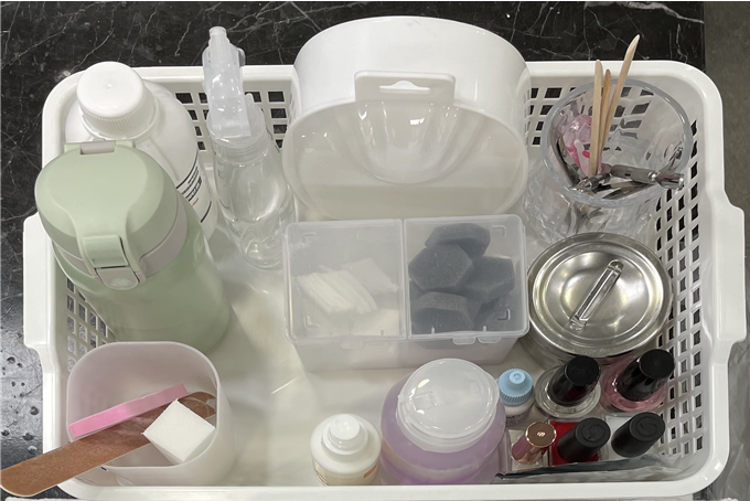 네일자격증 시험재료 바구니 세팅하기