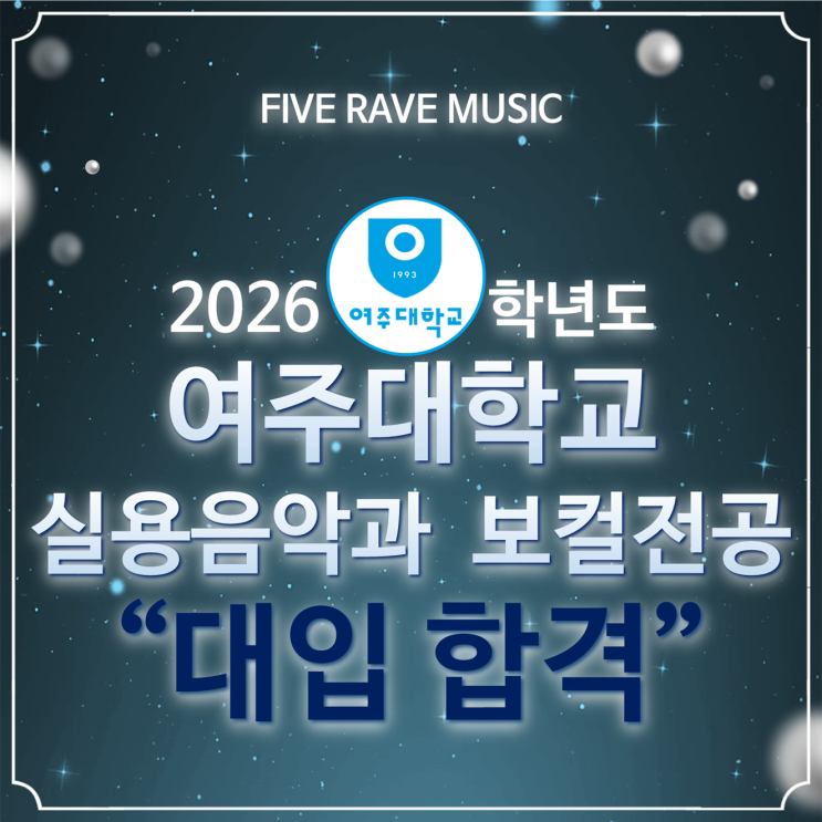 [대구 실용음악 보컬학원] 파이브 보컬 입시반 수강생의 2026 여주대학교 실용음악과 보컬전공 대입합격을 축하합니다!
