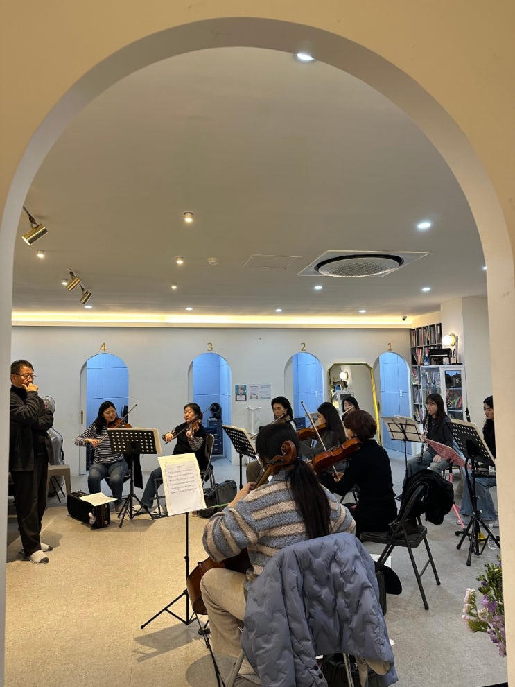 지난 금요일, 피아노스토리 음악학원에 조금 특별한 풍경이 펼쳐졌습니다. '필그린 음악학원 연주회'를 앞두고, 스트링스 오케스트라의 연습이 저희 학원에서 진행되었기 때문인데요. (참고로 저희 피아노스토리 원장님께서 이 스트링스 오케스트라의 예술감독으로 활동하고 계신답니다! ) 연습을 하기위해 우리 피아노스토리음악학원에 모인 단원분들! 첼로, 바이올린, 비올라, 그리고 관악기까지 더해진 풍성한 음악은 학원 공간을 가득 채웠습니다. 악보 넘기는 소리와 숨을 고르는 순간들까지, 모든 과정이 진지하고 아름다웠어요. 좋은 음악이 만들어지는 과정을 가까이서 보고, 듣고, 경험할 수 있다는 것 자체가 참 감사한....... <img src="https://blogthumb.pstatic.net/MjAyNjAzMDJfMjIx/MDAxNzcyNDQwNDE1NTU2.v8uy5EICRtmzFsawVLrw_1jSb-aO47cDubTYmjGoKOUg.4k19SymhjoipUPfAeXpM0sXumv4QYAfte2rjZ2GeRc4g.JPEG/900%A3%DF1772439440735.jpg?type=s3" />