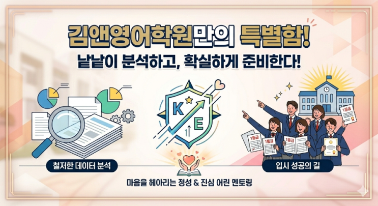 중학교 영어 점수에 속지 마세요 (예비 고1 학부모님께 드리는 제언) 고교 배정이 끝났습니다. 이제부터는 “어디를 갔는가”보다 “어떻게 준비할 것인가”가 훨씬 중요합니다. 이 시기에 가장 많이 듣는 말이 있습니다. “우리 아이 영어는 괜찮아요. 중학교 때 90점대였어요.” “내신 1~2등급이었으니 고등학교도 무난하겠죠?” 하지만 솔직히 말씀드리면, 중학교 영어 점수는 고등학교 영어 실력을 거의 보장하지 않습니다. 중학교 영어와 고등학교 영어는 ‘게임의 룰’이 다릅니다 중학교 영어는 교과서 지문 중심 암기 위주 시험 범위가 비교적 명확 즉, “관리”가 가능한 시험입니다. 반면 고등학교 영어는 초고난도 독해 지문 추론·논....... <img src="https://blogthumb.pstatic.net/MjAyNjAyMjNfMjIx/MDAxNzcxNzk3NzA5NDMx.veV_XuIaIquouibp4Y3_U1ri8rNHLJk4MXmAphV0Xx8g.zGOpu0rujnJ1HvJpd564bwNz-MTSrMk1egbRz1EpXKQg.PNG/1.png?type=s3" />