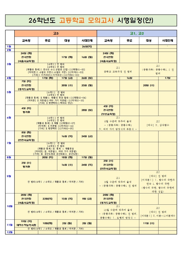 2026년 모의고사 일정입니다!