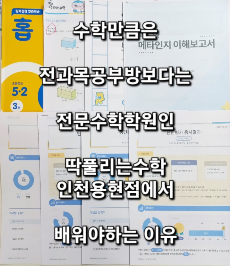 전과목 공부방에서 수학 잘한다고 했는데 왜 수학을 어려워 할까요? 안녕하세요. 딱풀리는수학 인천용현점입니다. 요즘 학부모님 상담을 하다 보면 자주 듣는 질문이 있습니다. “전과목 공부방 다니고 있는데, 굳이 수학만 따로 학원을 보내야 할까요?” 전과목 공부방이 나쁘다는 이야기가 아닙니다. 전과목 공부방은 생활관리, 숙제관리, 기본 학습 형성에는 분명 큰 장점이 있습니다. 오히려 전과목 공부방에서 옮겨오는 친구들 중에는 공부습관도 좋고, 태도도 정말 바른 친구들이 많아 저는 환영하는 편입니다. 하지만 수학은 그 방식만으로는 한계가 분명한 과목입니다. 문제는, 전과목을 다루다보니 수학 한과목을 깊이있게 심화문....... <img src="https://blogthumb.pstatic.net/MjAyNjAxMjlfMTUw/MDAxNzY5Njc2MzQxNTY4.k5eh4UzvYLEKi1fx0EwtccOVO7QcxjlEzaF6MfwiNpMg.C9vQjymQyTdpzwjWKaC6cOIHXT7_EirzMD960QGJsKUg.JPEG/900%A3%DF20251226%A3%DF163524.jpg?type=s3" />
