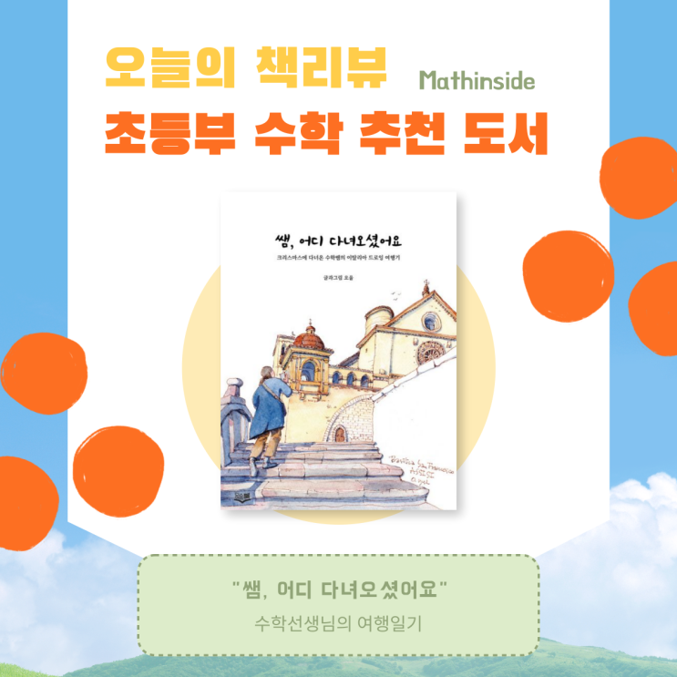 안녕하세요 아이들의 학습 방향을 함께 고민하는 매쓰인사이드 수학학원입니다 . . . . . 여행 책은 많습니다. 이탈리아 여행기도 많습니다. 하지만 이 책은 조금 다릅니다. 사진으로 기록한 여행이 아니라 그림으로 기록한 여행이기 때문입니다. 이 책의 저자 오율은 연세대학교 지질학과와 전산학과를 졸업하고 삼성SDS에서 재무 파트 전산 시스템을 운영하며 10년 동안 직장 생활을 했던 사람입니다. 지금은 학원에서 중학생들에게 수학을 가르치는 선생님입니다. 언뜻 보면 글과 그림, 여행 감성과는 거리가 있어 보이는 이과형 사람처럼 느껴집니다. 하지만 코로나 시기에 시작한 어반스케치가 삶의 방향을 조금 바꾸게 됩니다. 그림을 배우....... <img src="https://blogthumb.pstatic.net/MjAyNjAzMTBfMTE3/MDAxNzczMTE4MDg0Mjg3.KAwEbIIEz_06mQsY8Q-wjeKW7KjwxVSHBJrSmKo5S_kg.mwmLhDs0Ln39UKBSgkFLgLrnw5GKs9A5CIESNpfiIOcg.PNG/%C3%A5%B8%AE%BA%E4-001_%288%29.png?type=s3" />