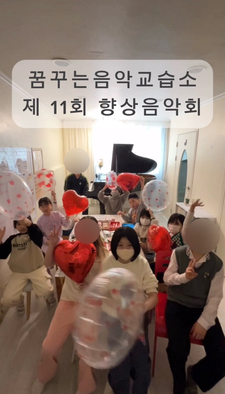 제 11회 향상음악회 꿈꾸는음악교습소는 한 명, 한 명의 학생이 자신의 속도로 차분하게 성장할 수 있도록 지도합니다. 피아노를 처음 배우는 학생부터 어릴 때 배우다 다시 시작하는 학생까지, 각자의 출발점에 맞춰 기초부터 차근히 바로잡아 지도합니다. 이번 향상음악회 또한 우리 아이들의 성장을 확인할 수 있었던 의미 있는 시간이었습니다. 이번 연주에서는 암보로 연주한 친구들이 늘어나 더욱 인상적인 시간이었어요! 아이들이 한 걸음씩 성장해가는 모습이 참 기특하고 뿌듯하게 느껴졌습니다. 이번 음악회는 전체 영상을 약 2분 30초로 요약 편집하여 함께 공유드립니다. 연주가 끝난 후에는 아이들과 함께 소소한 과....... <img src="https://blogthumb.pstatic.net/MjAyNjAzMjhfMTUg/MDAxNzc0NjcwMTYzOTk0.Xj6mZos38YqLGr6b-LaWDZahq-fekwzYX1AC6I26H8Yg.4FQiQB3VKmzQVDg1qFPVqxnNCHFWgZxhTrZlwk9Ogaog.JPEG/output%A3%DF1304841563.jpg?type=s3" />