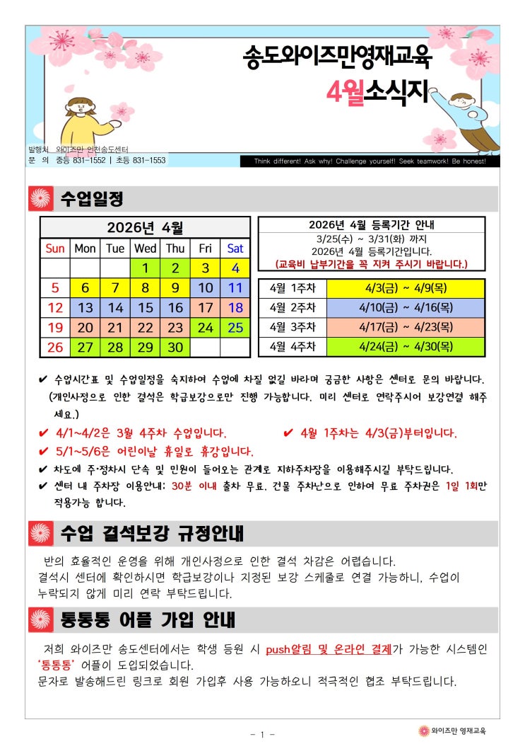 3월 26일 현재 더나은 영어학원 수업 안내드립니다
