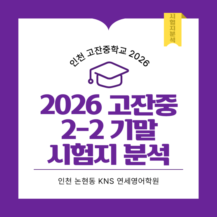 26년도 고잔중 2학년 2학기 기말 영어 시험지 분석-인천 논현동 KNS 연세 영어 학원