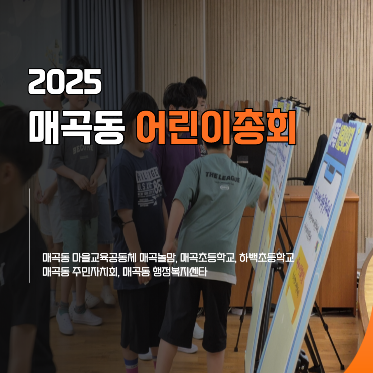 안녕하세요. 매곡동 마을 교육공동체 매곡놀맘 대표 김영미입니다. 12월이 되면 자연스럽게 한 해를 돌아보게 됩니다. 올해 매곡동에서는 어떤 변화가 있었지? 그 질문을 떠올릴 때 가장 먼저 떠오르는 장면은 올해로 5회차를 맞이하는 매곡초·하백초 아이들과 함께한 매곡동 어린이 총회입니다. “ 우리 의견이 진짜 반영돼요?” 어린이 총회에서 아이들이 제일 많이 묻는 질문입니다. 우리는 미소 지으며 대답하죠. “그럼! 너희 의견이 매곡동을 움직이는 거야.” 올해 최종 의제로 선정된 안건은 작년 북구 아동정책제안대회 최우수상인 ✨ ‘말하는 금연단속 CCTV 설치하기’였습니다. 금연단속에 대한 의견은 해마다 나오고 있었는데....... <img src="https://blogthumb.pstatic.net/MjAyNTEyMDhfMTY5/MDAxNzY1MTI5MDE5NTU0.5uRec0dZnvaw9B7oBGlLpisxgaZPUOFUXAQVw4LLYGcg.fvZ7ckX2UPF1i730aMQY10FHJlc4PywTFiVDRCprJDQg.PNG/%C1%A6%B8%F1%C0%BB_%C0%D4%B7%C2%C7%D8%C1%D6%BC%BC%BF%E4._%282%29.png?type=s3" />