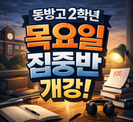 2026년 영어 목요일 집중반 개강 합니다 동방고 2학년 영어 100점 도전! 중간고사 기말고사 똑같은 예상문제 만들예정! ^^ 화이팅! <img src="https://blogthumb.pstatic.net/MjAyNjAyMjdfMzAw/MDAxNzcyMTc0NjczMDg4.DNDafMrRA-417gvAPjU6OCUX7vzheslpX301JJeGk70g.FRcXIxIsSLUWsyVPkOTiqTfdv2g7WytPP-fpgiy8ey0g.PNG/image.png?type=s3" />