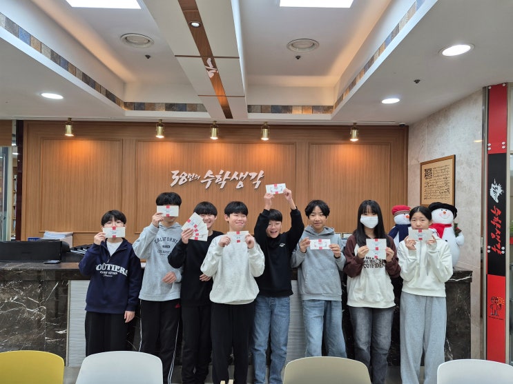 결과를 바꾸는 교육 미래를 이끄는 수학 안녕하세요, 여러분! 정자동수학학원 38인의 수학생각입니다 : ) 가을이 깊어가던 어느 날, 학원 안에는 평소와는 다른 설렘이 가득했습니다 문제 풀이로 분주하던 교실이 이날만큼은 아이들의 웃음과 박수 소리로 분위기가 조금 더 따뜻했는데요?! 바로 가을학기 시상식이 진행된 날이었습니다! 한 학기 동안 묵묵히 쌓아온 노력의 시간을 함께 돌아보고 진심으로 축하하는 자리였어요. 시상식 당일, 문을 열고 들어오는 아이들 표정부터가 달랐습니다 “오늘 가을학기 시상식 맞지?” “장학금은 누가 받을까?” 책가방을 내려놓고 친구들과 이야기 나누며 교실 앞을 바라보는 모습에서 기대감이 그대로....... <img src="https://blogthumb.pstatic.net/MjAyNTEyMjhfMjUy/MDAxNzY2OTAyMjg2NjQ1.M13BttxlZyLdIJO9jFg1SVi06S4z7dZMyHgbb_fXvhog.favARWqrbfGBDfTd9MJlizTYUnY3XBUkT_jZVcJ4Jg8g.JPEG/KakaoTalk_20251220_141859126.jpg?type=s3" />