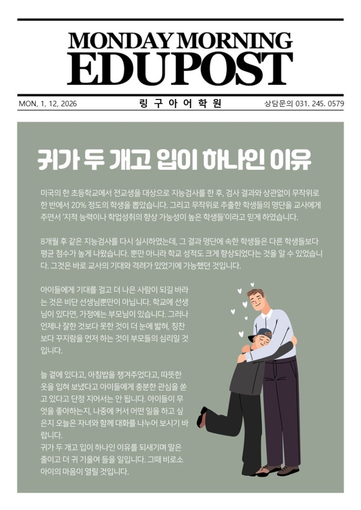 [조원동 영어학원] 링구아와 함께하는 먼데이포스트