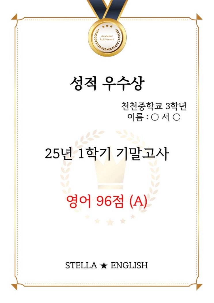[수원 천천동] 스텔라 ★ 영어 - (25년) 천천중 3 성적 우수자