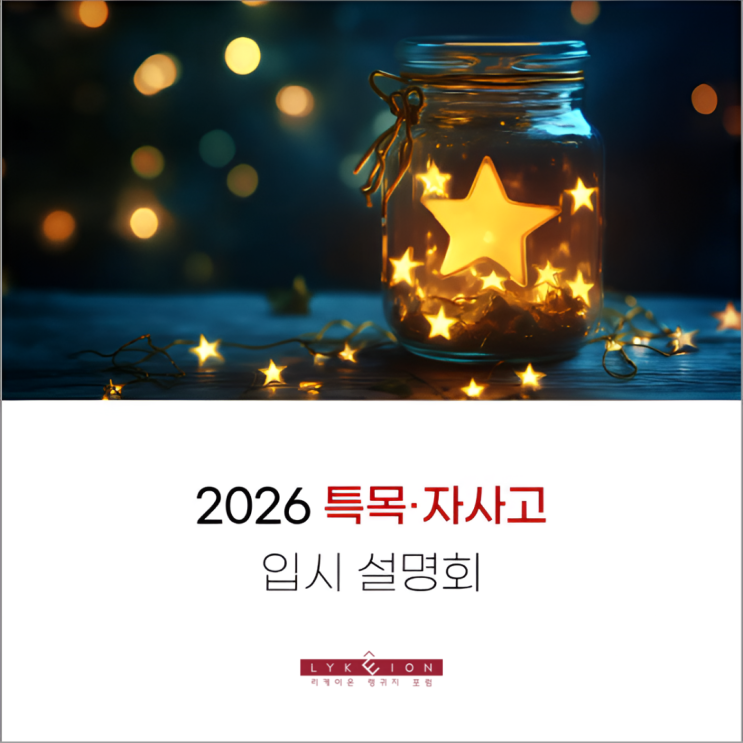 안녕하세요. 리케이온 교육입니다. 1월 14일 수요일 저녁, 리케이온 교육에서는 2026학년도 특목고·자사고 입시 설명회를 진행하였습니다. 제한된 공간에도 불구하고 많은 학부모님께서 참석해 주셨고, 장시간 이어진 설명에도 끝까지 자리를 지키며 집중해 주시는 모습에서 자녀의 진로와 고등학교 선택에 대한 깊은 고민과 진심이 고스란히 느껴졌습니다. 모든 분을 직접 모시지 못한 점이 아쉬워, 설명회에서 다룬 내용을 바탕으로 특목·자사고 입시의 핵심만 정리해 공유드립니다. ■ 특목·자사고 입시의 본질은 명확합니다 많은 학부모님들께서 특목·자사고 입시를 두고 “결국 스펙 쌓기 아니냐”는 질문을 하십니다. 맞습니다. 학생부를 관....... <img src="https://blogthumb.pstatic.net/MjAyNjAxMTVfNjYg/MDAxNzY4NDY4ODc2Njcw.RzkwmHn_xPBYzzDZK0AOM9S03SUKgeEgRnkzAH2OAbcg.TAmcX9a86yqZ7PxZHlM3X-6Kc86ZCSnGIMBFAvO5Eswg.PNG/%BD%E6%B3%D7%C0%CF.png?type=s3" />