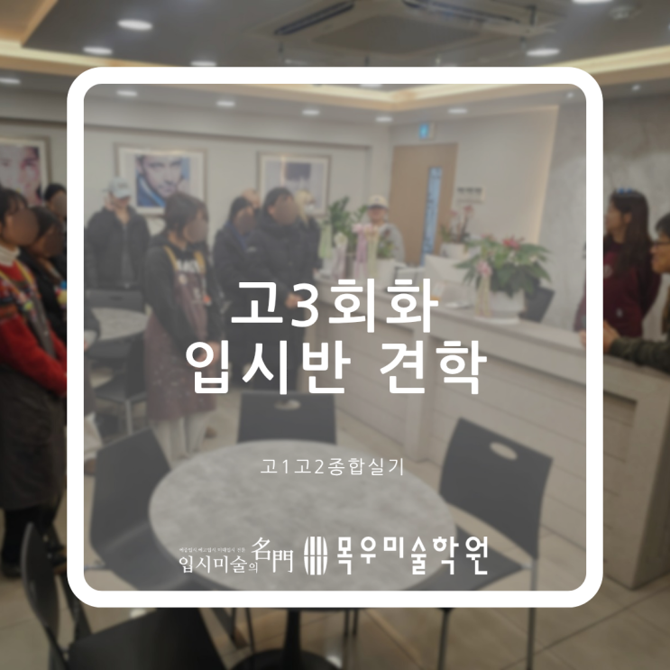 안녕하세요~ 서연쌤입니다! 고2에서 예비고3로 올라가는 시기를 앞두고, 우리 친구들이 입시반 견학을 다녀왔습니다. 앞으로 자신들이 수업하게 될 공간과 분위기를 직접 보는 중요한 시간이었어요. 아직 교실을 들어가기전 대기하고 있는 사진인데 해맑은 사진이죵...? 견학에서는 입시반에서 사용하는 작업 공간과 개인 자리, 그리고 정시수업이 어떻게 진행되는지 전반적인 분위기 살펴보았습니다. 선배들의 시험작과 작업 과정을 살펴보기도 했답니다~! 입시반 견학의 가장 큰 포인트는 현재 입시를 준비 중인 선배들의 작품과 작업 과정을 직접 볼 수 있었다는 점입니다. 완성작뿐만 아니라 진행 중인 그림들을 보며 앞으로 어떤 수준까지 준....... <img src="https://blogthumb.pstatic.net/MjAyNjAxMTdfMTg4/MDAxNzY4NjE5NzY4MDg4.ZjuWBrxCR229Q7u0-UQCDh9_NuERTWSgH9dGD1Bt5Rwg._XwfSAX72Jcq8HeJu0mYqtBHKYhiMHw5UGa-AEhRGjkg.PNG/%BA%ED%B7%CE%B1%D7_%B4%EB%C7%A5%BB%E7%C1%F8_20260117_121353_0000.png?type=s3" />