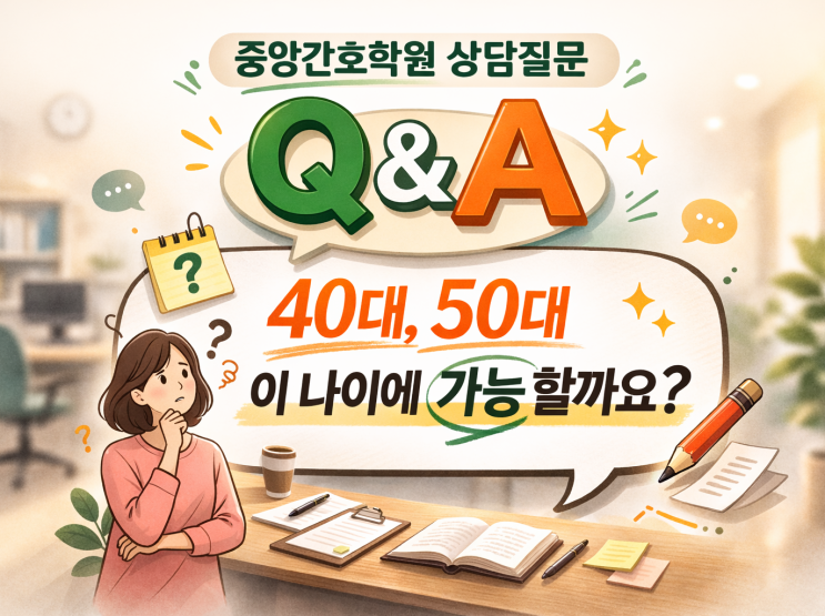 안산 간호학원 상담을 하다 보면 특히 40대, 50대 분들이 가장 많이 하시는 질문이 있어요. 조심스럽게, 하지만 정말 진지하게 물으세요. 제가 이 나이에 잘 배울 수 있을까요? 젊은 사람들 사이에서 뒤처지진 않을까요? 솔직히… 이 나이에 취업이 되긴 하나요? 이 질문을 받을 때마다 저는 항상 똑같이 대답해요. 무조건 YES예요. 괜히 희망적인 말로 붙잡으려는 대답 아니고요. 25년 동안 안산에서 간호조무사 과정을 운영하면서 정말 수많은 분들을 봐왔기 때문에 확신을 가지고 드리는 말이에요. 그래서 상담실에서는 이렇게도 말씀드려요. 그 나이는 번데기 앞에서 주름 잡는 나이예요. 여기서는 주름 잡을 수 없는 나이입니다. 1️⃣ 간호....... <img src="https://blogthumb.pstatic.net/MjAyNjAyMjRfMjM1/MDAxNzcxOTE2MzAxNjI4.0M2807GIgpCO78j_4_ovm5IhCOPb0AsgKPJAdnnpMIMg.xWvVxil_Na5R-jY0hjrq53LbFZnwN45M6DK3fLkHwc0g.PNG/%BA%ED%B7%CE%B1%D7_%B3%AA%C0%CC%BA%B0QnA.png?type=s3" />