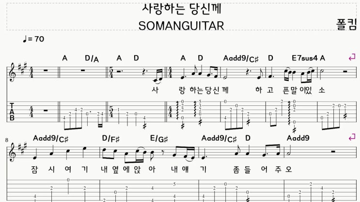 [A Key] 폴킴 - 사랑하는 당신께 악보 행신동 실용음악학원 소만마을 기타교습소