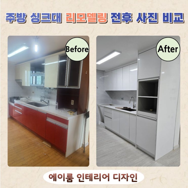 안녕하세요. 에이룸 인테리어입니다. 이번에 소개해드릴 현장은 구로동 중앙하이츠 아파트 주방 싱크대 교체 공사입니다. 철거 및 시공 과정 기존 주방은 3.2M 일자형 구조였습니다. 작업대 끝부분이 오픈 마감으로 다소 어중간하게 마감되어 있었고, 사용성도 아쉬운 상태였습니다. 해당 현장은 전체 인테리어 공사가 함께 진행된 곳이었기 때문에, 싱크대 철거를 먼저 진행했습니다. 이후 모든 공정이 마무리된 뒤, 마지막 후공정으로 싱크대를 시공했습니다. 주방 가구는 다른 공정과의 간섭이 많기 때문에 순서가 매우 중요합니다. 에이룸 인테리어는 현장 흐름에 맞춰 정확하게 작업을 진행했습니다. ✨ 시공 후 모습 화이트펄 하이그....... <img src="https://blogthumb.pstatic.net/MjAyNjAyMTlfMzAg/MDAxNzcxNTAzOTUyNDI5.uZgVIoWnLeDQLfvLO8AJdASumDedntmAwJrWFFHgv8Mg.5YlBtx0S8IK7b5fqH6m8QS7VMH0mBO15fkWH2_1CwpEg.JPEG/%C0%FC%C8%C4%BB%E7%C1%F8_%281%29.jpg?type=s3" />