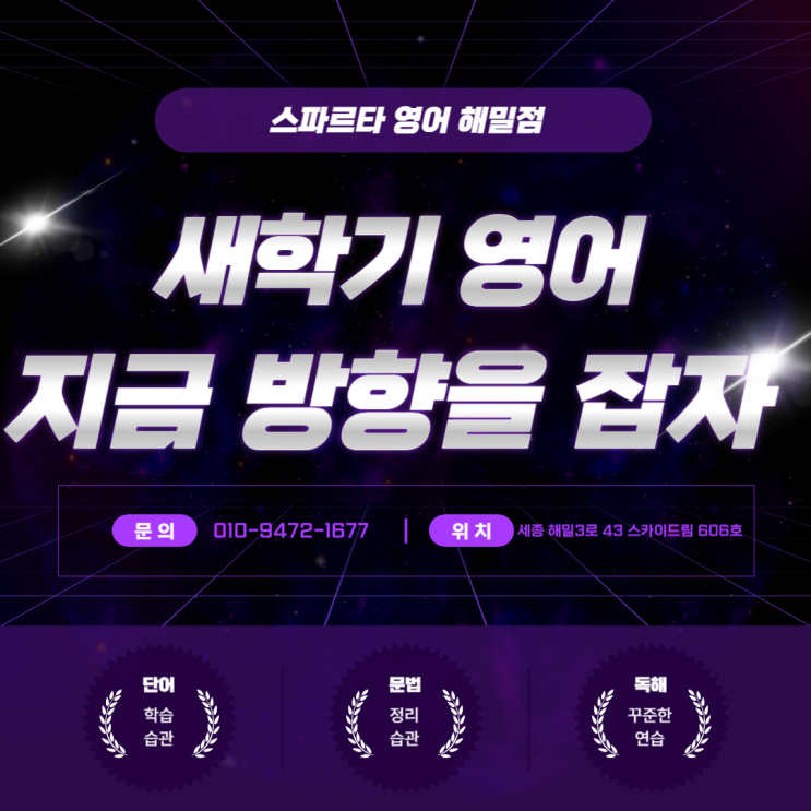 안녕하세요. 세종 해밀동 영어 전문 학원 스파르타 영어 해밀점입니다. 새학기가 시작되면 많은 학생들이 새로운 마음으로 공부를 시작합니다. 하지만 이 시기에 가장 중요한 것은 단순히 공부량을 늘리는 것이 아니라 영어 공부의 방향을 제대로 잡는 것입니다. 영어는 단기간에 실력이 만들어지는 과목이 아니라, 꾸준한 학습 방향과 습관이 성적을 결정하는 과목이기 때문입니다. 새학기 초반이 중요한 이유 새학기 초반은 아직 시험 부담이 크지 않은 시기입니다. 그래서 이때 어떻게 공부하느냐에 따라 한 학기 전체의 흐름이 달라질 수 있습니다. 이 시기에 • 기초 개념을 정리하고 • 부족한 부분을 점검하고 • 공부 방법을 바로 잡으면....... <img src="https://blogthumb.pstatic.net/MjAyNjAzMThfMTkx/MDAxNzczODA0MDE2MzE3.gP1ZZUCBu8nCHH0YDJ8uaIhY9CNJawt8YCNkWgaMs5Mg.YkjV4neXyxwnxiDLZC70Q_Gc8sGVXBDvsRuj_vbOLqwg.PNG/%BC%D2%BF%B5_%C5%DB%C7%C3%B8%B4-095_%281%29.png?type=s3" />