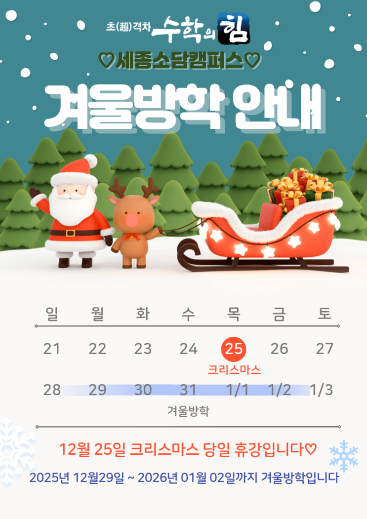 [수학의힘 세종소담캠퍼스] ❉ 겨울방학 일정 / 특강안내 ❉