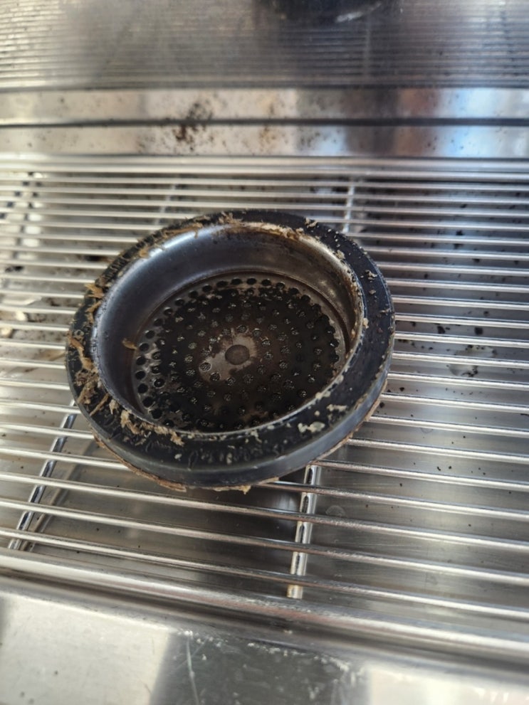 에스프레소 추출에서 많은 분들이 원두, 그라인더, 탬핑은 중요하게 생각하지만 정작 물이 처음 통과하는 부분의 청결은 놓치는 경우가 많습니다. 이번 사진처럼 사워스크린 표면과 가장자리 주변에 커피 오일과 잔여물이 누적된 상태는 단순히 보기 좋지 않은 수준을 넘어서 추출 품질에도 영향을 줄 수 있는 상태로 볼 수 있습니다. 사워스크린은 그룹헤드 내부에서 물이 고르게 분산되도록 돕는 중요한 부품입니다. 그런데 표면 오염과 분사홀 주변 막힘이 생기면 물이 균일하게 퍼지지 못하면서 채널링이나 추출 편차가 생길 수 있습니다. 그 결과 - 향이 맑지 않고 탁하게 느껴지거나 - 쓴맛이 불필요하게 올라오고 - 같은 레시피인데도 맛....... <img src="https://blogthumb.pstatic.net/MjAyNjAzMjRfMTgz/MDAxNzc0MzM1MzkzMzA0.7FtBGkE8y25jYqEvpCI0hNtHEDnQU7xCLU4714tbIwkg.J1ksA4fNSxkoCK3JzKh4O1fazqykx7XDXrt795PuZDsg.JPEG/900%A3%DFfile%A3%DF00000000383071fdac1ccbc50c0dd655.jpg?type=s3" />