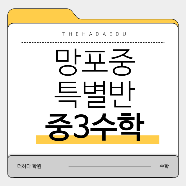 안녕하세요. 영통·망포 지역 수학의 정답, 더하다 학원입니다. 중학교 3학년은 고등 수학의 기초를 다지고 본격적인 입시 레이스를 준비해야 하는 가장 중요한 시기입니다. 망포중학교 학생들의 완벽한 내신 대비와 고등 수학 선행을 위해, 더하다 학원만의 노하우를 집약한 '망포중 3학년 특별반'을 개강합니다. 망포중 특별반 특별반 수업 특징 이번 특별반은 단순한 진도 빼기가 아닌, 학생의 완벽한 이해와 체화를 목표로 합니다. [중3 유형 및 심화 수업] 망포중학교 내신 출제 경향을 완벽 분석하여 필수 유형부터 고난도 심화 문제까지 빈틈없이 대비합니다. [공통수학1 연계 학습] 중3 과정에 머무르지 않고, 개편된 고등 과정....... <img src="https://blogthumb.pstatic.net/MjAyNjAyMjdfMjI0/MDAxNzcyMTcxODI3NTEx.pfbNlfpd4Vykc643ETcoa_3v6gy0WGm-gi1bozvoMT8g.oVhb150uU-jZ9CYsbCpFodMGJ4H38cg1xkKAGnIZtOsg.PNG/001.png?type=s3" />