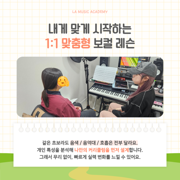 이웃님들~ 안녕하세요! 누구나 쉽고 즐겁게 노래하게 되는 곳, 라실용음악학원 안양점입니다 처음 노래를 배우려고 마음먹었지만... 막상 시작이 망설여지는 이유는 의외로 단순하죠~ㅜㅜ "내가 과연 잘할 수 있을까?" "음치/박치면 어쩌지?" "레슨 받아도 실력이 안 늘면 어떡하지?" 특히 보컬 레슨은 결과가 바로 눈에 보이지 않기 때문에 배우는 과정이 더 중요하게 느껴질 수밖에 없어요~ 그래서 안양보컬학원을 찾는 분들 중에는 "초보자도 부담 없이 성장할 수 있는 곳"을 찾고 계시는 경우가 많더라구요 :) 오늘은 라실용음악학원 안양점이 입문자 & 초보자분들께 특히! 만족도가 높은 이....... <img src="https://blogthumb.pstatic.net/MjAyNjAxMDZfMjIy/MDAxNzY3NzA4Nzg2NDA3.yY6XGECOk2TfPn87gjhk0AIAo3yj9uCaN081Ut1IGhcg.K-fwzw6sidvT5fqXSkxucNyDZBahs-omomCfI3To__Mg.PNG/1-%B6%F3%BD%C7%BF%EB_%BE%C8%BE%E7%C1%A1_%BA%B8%C4%C3%B9%DD_%B0%AD%C1%A1_1.png?type=s3" />