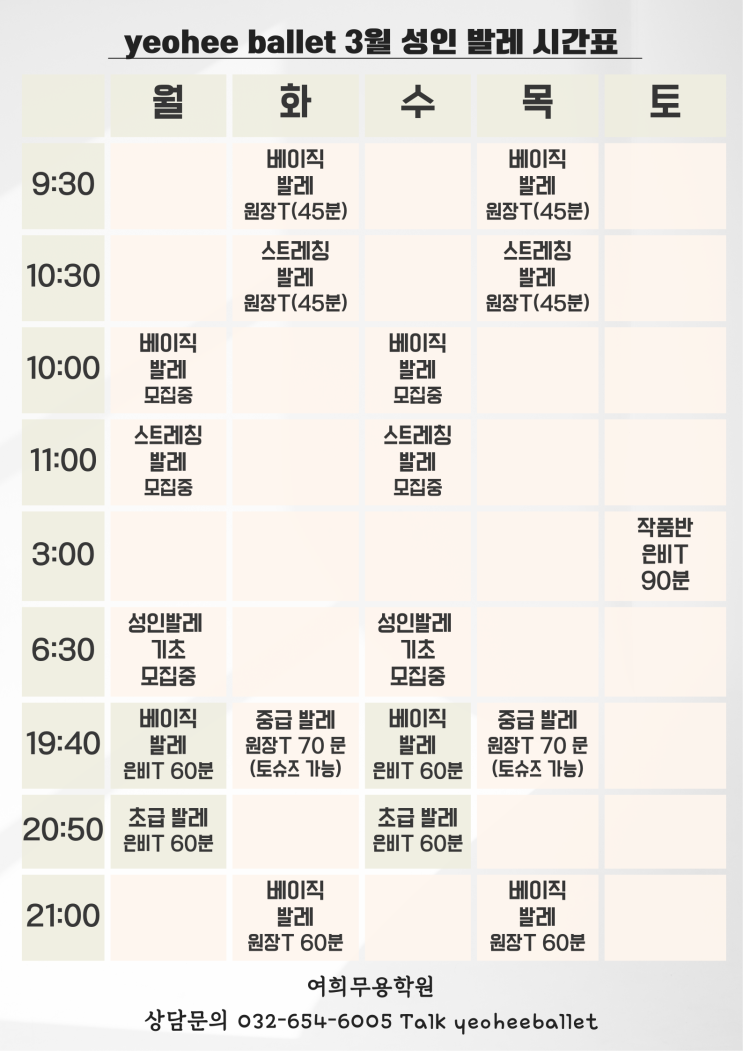 [부천 / 인천 발레 학원] 2026년 3월 성인 시간표