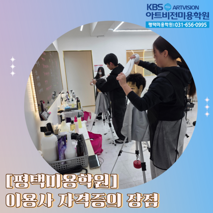안녕하세요! 평택 kbs 아트비전 미용학원입니다! 오늘의 포스팅은 요즘 핫한! 이용사 국가자격증에 대해 알아보려고 하는데요! 오늘도 보러 가보실까요~? 요즘 남성 뷰티 시장이 빠르게 성장하면서 이용사 자격증에 대한 관심도 꾸준히 높아지고 있습니다. 바버샵 창업, 남성 전문 디자이너 취업, 기술 확장 등 다양한 진로가 열리면서 많은 분들이 도전하고 계신데요! 그래서 오늘은 저희 학원 이용사 자격증반과 함께, 이용사 자격증을 취득했을 때 어떤 장점이 있는지 자세히 안내 해드리겠습니다. 이용사 자격증, 왜 필요할까요? 이용사 자격증은 국가기술자격증으로, 남성 커트 및 면도 등 이용 기술을 공식적으로 인정받는 자격입니다. 특....... <img src="https://blogthumb.pstatic.net/MjAyNjAyMTlfMjcy/MDAxNzcxNDgwMjA3NDcx.Tog4Sh_RZ99TJqOwsm1a_3VYAuxnaE-3R-X7f5R7bPIg.XldRF6411EhCyVg4Wu1Ada8ZM5S6wKg8ZLbDYwGfyRcg.PNG/%BA%ED%B7%CE%B1%D7-%C7%A5%C1%F6-001.png?type=s3" />