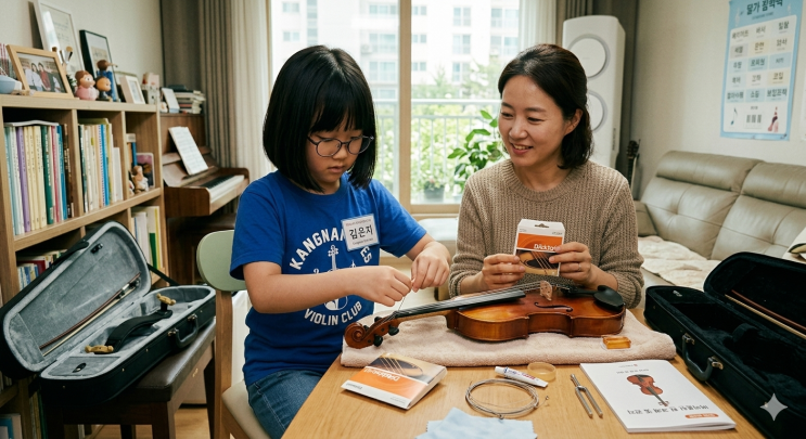 악기 소리를 좌우하는 가장 중요한 부분 바이올린, 우쿨렐레, 기타 같은 현악기를 연주하다 보면 이런 생각이 들 때가 있습니다. “요즘 소리가 예전 같지 않아요.” “줄이 좀 뻣뻣한 느낌이에요.” “현을 언제 바꿔야 하는 거죠?” 많은 분들이 놓치기 쉬운 부분이 바로 현(줄) 관리입니다. 사실 현 상태에 따라 소리의 질과 연주감이 크게 달라집니다. 오늘은 현의 교체 시기와 관리 방법을 쉽게 정리해드릴게요 1. 현은 왜 교체해야 할까요? 현은 사용하면서 점점 마모되고 탄력이 떨어집니다. 그 결과 ✔ 음정이 불안정해지고 ✔ 소리가 탁해지고 ✔ 손에 닿는 느낌이 거칠어집니다. 그래서 일정 기간마다 교체가 필요....... <img src="https://blogthumb.pstatic.net/MjAyNjAzMThfMjk3/MDAxNzczNzc4OTYyMTg5.zaRuw5fb_CnUZEdc-n5RQ8ZSfSpJmX8ttngm3lhoADkg.iwFeKXT-O86CAFAZ_UEHVRTwBAuJYpYzmBaTcdm9gdwg.PNG/Gemini_Generated_Image_g5flnyg5flnyg5fl.png?type=s3" />