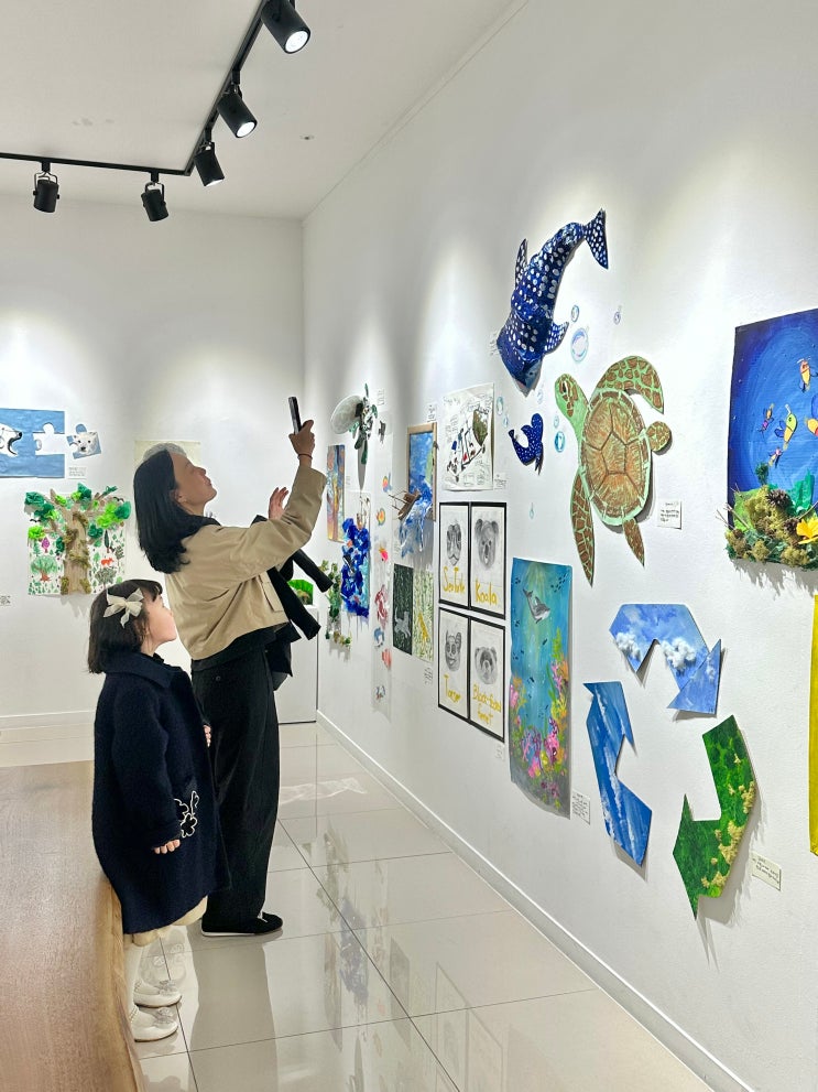 전시가 시작되자마자, 아이들과 학부모님들의 발걸음이 이어지고 있어요 작품 앞에 멈춰 서서 캡션을 하나하나 읽어보는 모습이 참 인상적입니다. “이건 내가 할 수 있는 방법이에요.” “이건 내가 지구를 생각한 이야기예요.” 아이들이 직접 쓴 글을 따라가다 보니, 작품이 단순한 결과물이 아니라 ⭐‘생각의 과정’⭐으로 느껴지기 시작해요. 유치부 친구들은 형, 누나들의 작품을 신기하게 바라보고, 초등부 친구들은 서로의 생각에 공감하며 “나도 이거 해볼래!” 하고 이야기합니다. 학부모님들 역시 아이들의 시선과 생각에 귀 기울이며 작품 하나하나를 천천히 관람해주셨어요. 이번 ‘Race to Zero’ 전시는 무언가를 정답처럼....... <img src="https://blogthumb.pstatic.net/MjAyNjAzMjBfMzQg/MDAxNzczOTg3Nzk2NjUx.jHEebnUrlBWm-LjBblfuTClrmdERsW25uQzKbzKaQ9og.-uJ5NJnIOJ5oiuFkAvKsQANCVgQiRQ2Xiqz8OD710TEg.JPEG/KakaoTalk_20260320_151605241.jpg?type=s3" />