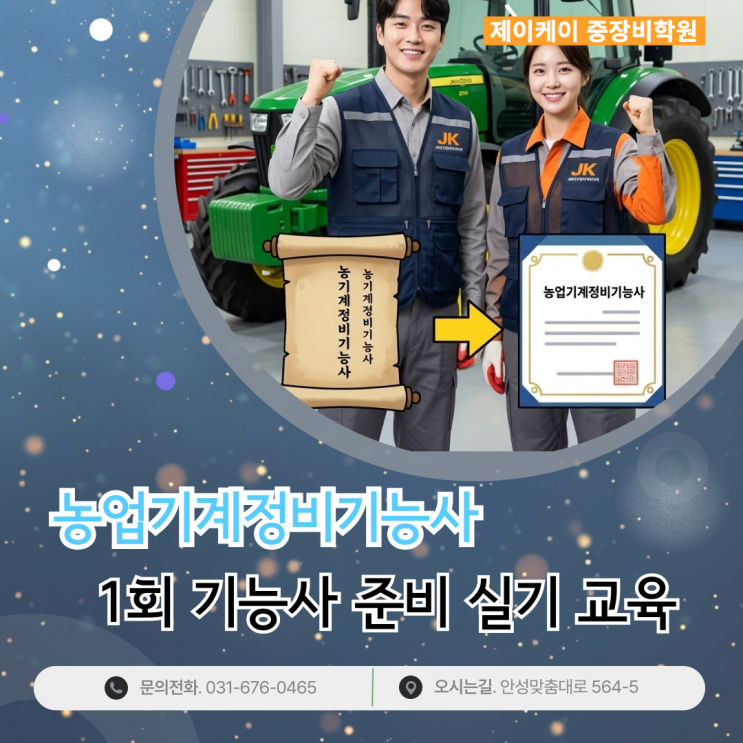 농기계정비기능사 명칭 변경 및 실기 준비 교육 소개 어느덧 3월의 첫날이 밝았네요. 2026년의 봄기운과 함께 새로운 도전을 시작하기 딱 좋은 날씨죠? 요즘 저희 제이케이 중장비학원의 실습장은 농기계정비기능사 실기 시험을 준비하는 열기로 벌써부터 후끈후끈하답니다. 기름 냄새 섞인 공기 속에서도 수강생분들의 눈빛만큼은 반짝거리는 걸 보니 덩달아 힘이 나더라고요! 오늘은 이름이 바뀌어 조금은 낯설 수도 있는 농업기계정비기능사 소식과 함께 1회 실기 합격을 준비하고 계신 분들을 위한 교육 과정을 소개해 드리겠습니다. 농기계정비기능사 명칭 변경 및 실기 준비 교육 소개 이름은 바뀌어도 가치는 그대로! 오랫동안 익숙하게 불....... <img src="https://blogthumb.pstatic.net/MjAyNjAzMDFfMjE2/MDAxNzcyMzYyMDQ5NDUz.4fLbuklygHZhOscZPTXZURgZy88-AvONLEX2AcYd5y8g.2NzsYO8Gcz8Z7jYGh12OVkqlyfli8v79xSBpBesWa6Ag.PNG/%28%BD%E6%B3%D7%C0%CF%29%B3%F3%B1%E2%B0%E8%C1%A4%BA%F1%B1%E2%B4%C9%BB%E7%26nbsp%3B%B8%ED%C4%AA%26nbsp%3B%BA%AF%B0%E6%26nbsp%3B%B9%D7%26nbsp%3B%BD%C7%B1%E2_%C1%D8%BA%F1%26nbsp%3B%B1%B3%C0%B0%26nbsp%3B%BC%D2%B0%B3.png?type=s3" />