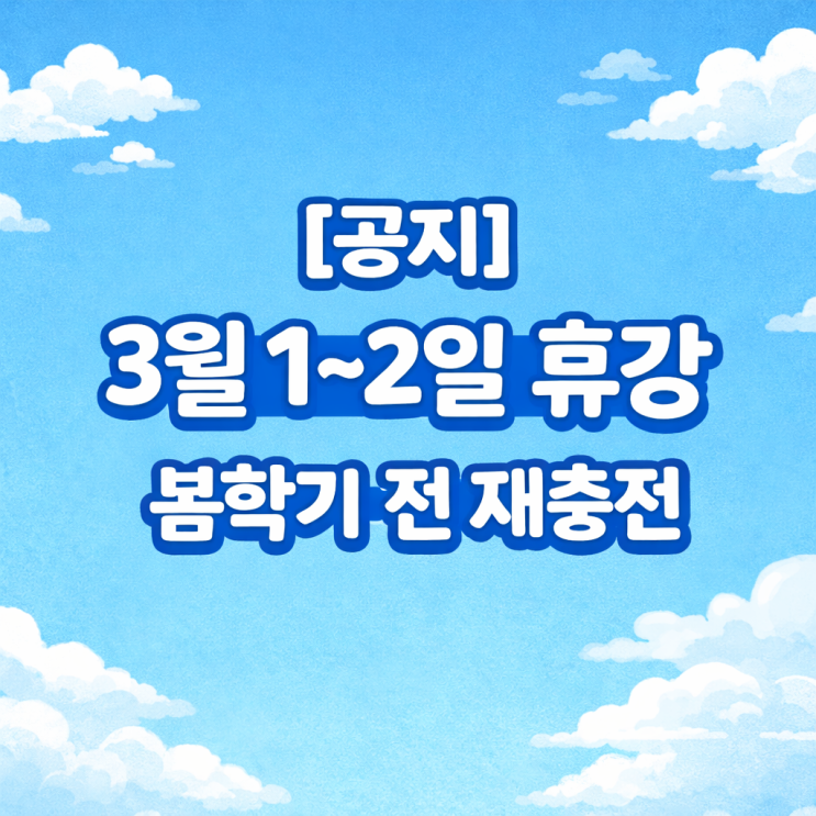 [공지] 3월 1~2일 휴강 안내 – 봄학기 전 재충전 시간
