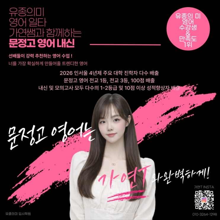 안녕하세요. 유종의미 영어과 대표 강사 가연T입니다 ❤️ 오늘은 가장 많은 관심을 보여주고 계신 가연T의 문정고 영어 내신반에 대해 안내드리고자 합니다. 요즘 상담 문의가 유독 한 방향으로 몰립니다. “문정고 영어 학원 찾다가 연락드렸어요.” “문정고 영어 내신 전문이라 들었어요.” “문정고 영어는 가연쌤 수업과 자료가 압도적이라고 해서 연락드렸습니다.” 문정고 영어 문의는 항상 저에게 옵니다. 이제는 저도 압니다. 문정고 영어는 이미 제 자리라는 걸요. 문정고 영어, 처음부터 끝까지 설계합니다 저는 유종의미 영어 과목이 개설된 이후 문정고 영어 수업을 계속 맡아왔습니다. 고1에서 시작해 고2 내신을 잡고 고3 수....... <img src="https://blogthumb.pstatic.net/MjAyNjAyMjVfMjM1/MDAxNzcyMDAzMzI0MzE5.MxxAZjy8buaF0IHzObQTcjKpKFjVDCH_dsfIFicTxAAg.Cv1qYbtHlwjO4pVAbuzG54jf2UMVJBSWykG2yi-yt8wg.PNG/KakaoTalk_20260225_160159039.png?type=s3" />