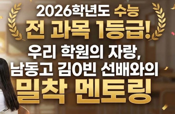 인천 논현동 영어학원 남동고 수능 올 1등급 '김0빈 선배'가 온다! 고3 생활의 정석 대공개 안녕하세요. 인천 논현동 영어학원 아이들의 영어적 임계점을 돌파시키고, 결과로 그 가치를 입증하는 카일쌤입니다. 2026년 2월, 이제 새 학기까지 남은 시간은 채 한 달이 되지 않습니다. 특히 올해는 내신 개편 등 입시 지형이 그 어느 때보다 복잡합니다. 이런 혼란 속에서 우리 논현동의 예비 고3 학생들이 가져야 할 것은 불안함이 아니라 '목표를 이루는 승리 공식'입니다. 이에 카일쌤 영어학원에서 아주 특별한 만남을 준비했습니다. 2026학년도 수능 전 과목(All) 1등급이라는 경이로운 성적을 거둔 우리 학원의 자랑, 남....... <img src="https://blogthumb.pstatic.net/MjAyNjAyMDdfMTg1/MDAxNzcwNDY5MTU0MjM1.SCLWRB60Sw9Cfgp-6xihevGuMjXaxLTdaLlaftHLnHsg.Yfxg54wxSoa7rfQ6bTTMhoO4FDwfUhqiIlqVDBnrKo8g.PNG/image.png?type=s3" />